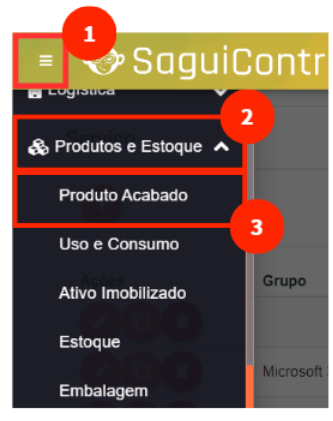 No menu à esquerda, acesse Produtos e Estoques > Produto Acabado
