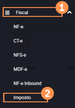 No Menu superior esquerdo, acesse Fiscal > Imposto