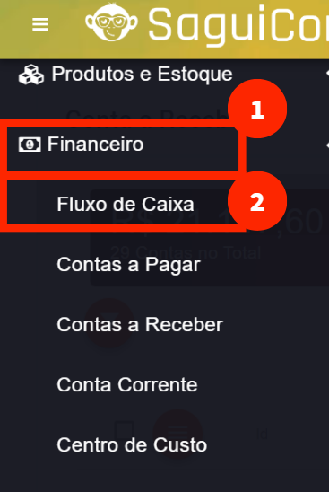 - No menu principal, vá até Financeiro > Fluxo de Caixa.