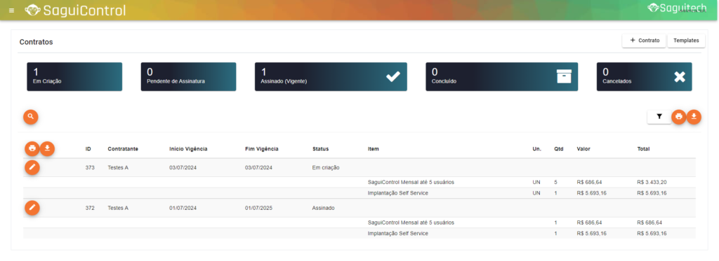 - Atualização Automática: O status do Contrato é atualizado automaticamente no SaguiControl, indicando que o contrato foi assinado e está ativo.