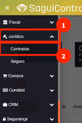 Acesse o menu Jurídico > Contratos;