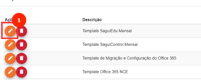 Para editar um Template existente, é só clicar no ícone de lápis, ao lado esquerdo do Template que precisa ser alterado.