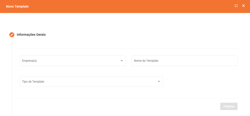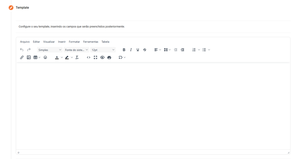 Crie o Template personalizado para sua empresa, e prossiga para o próximo passo!