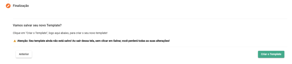 Após todos os dados serem preenchidos, o próximo passo solicitará sua confirmação para concluir o processo de Criação do Template.