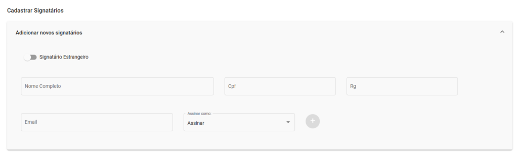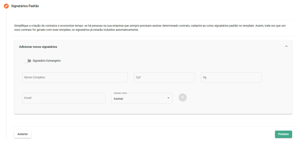 - Signatário Estrangeiro?: Indica se o novo signatário é uma pessoa estrangeira;