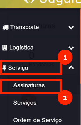 No menu superior a esquerda, acesse Serviço > Assinaturas