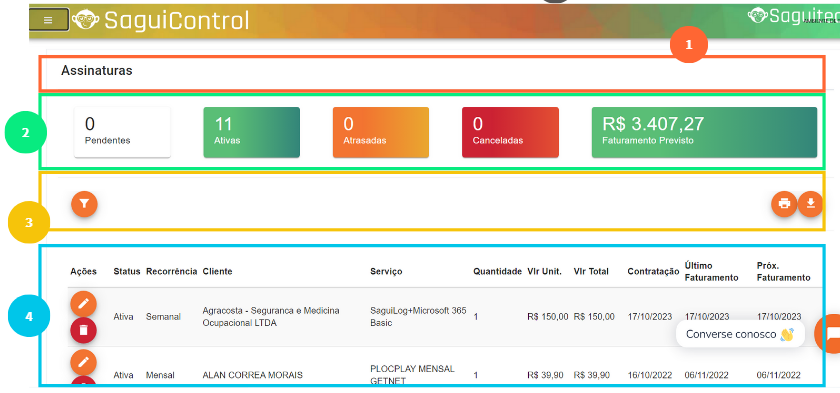 Entenda o funcionamento geral da Tela de Gestão de Assinaturas: