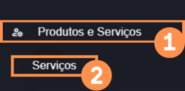 No menu superior a esquerda, acesse Produtos e Serviço > Serviços