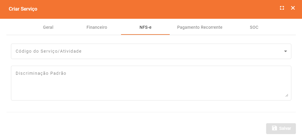- Código SOC: Cadastre um código SOC único para que o Serviço possar ser identificado claramente;