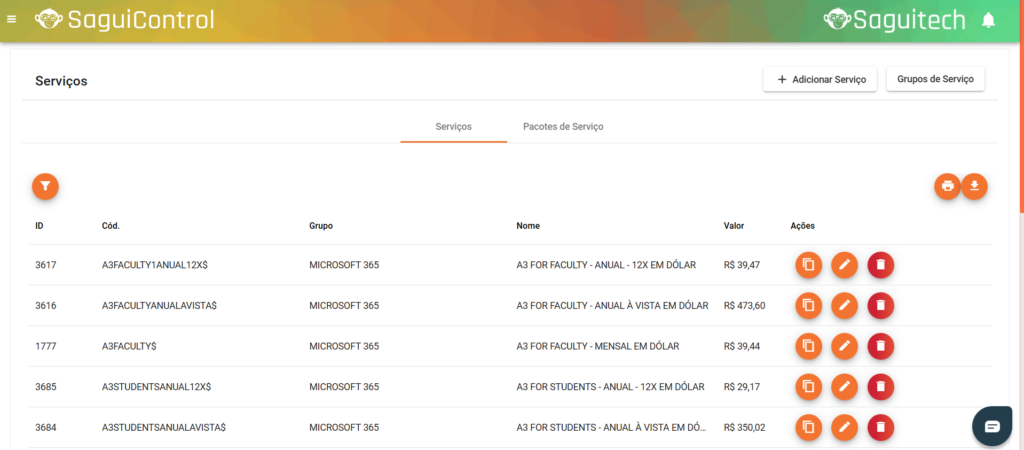 🔎 Para entender mais como essa tela funciona, acesse: Entenda a Tela de Gestão de Serviços no SaguiControl