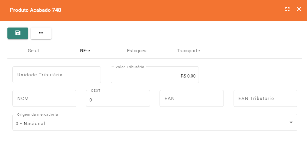 • Valor Tributário: Insira o valor tributário padrão para este produto na nota fiscal.
