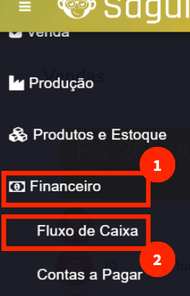 - No menu principal, vá até Financeiro > Fluxo de Caixa.