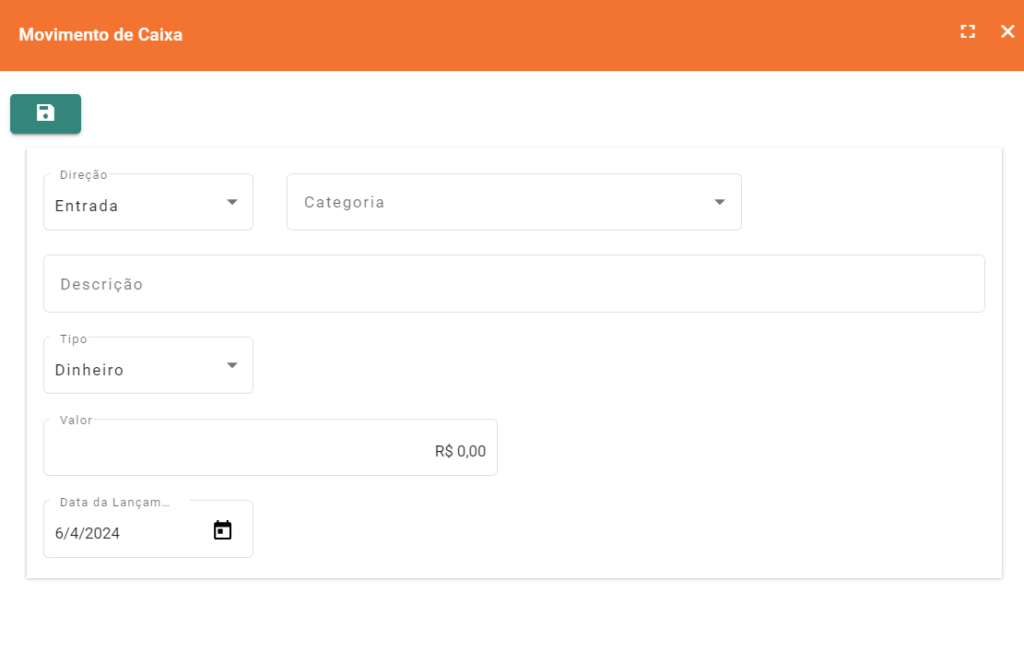 no canto superior esquerdo da janela, para que as informações sejam gravadas e novo lançamento seja salvo.
