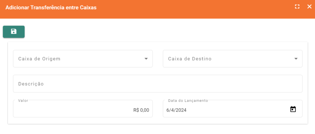 Passo 2.2: Crie/Edite uma Nova Transferência Entre Caixas