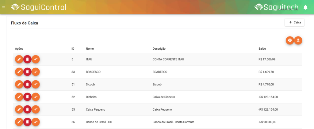 A gestão eficiente do fluxo de caixa é essencial para manter o controle financeiro da empresa. No SaguiControl, é possível criar e editar Movimentações de Caixa de forma simples e organizada.