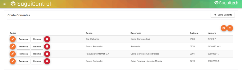 🔍 Para saber mais sobre essa tela, acesse: Entenda a Tela de Gestão de Contas Correntes no Saguicontrol