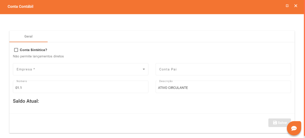 - Descrição: Forneça uma descrição breve e informativa sobre esta Conta Contábil, ajudando a identificá-la facilmente entre outras contas;