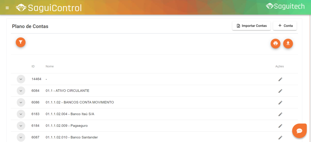 🔍 Para entender mais o funcionamento dessa tela, acesse: Entenda a Tela de Gestão de Contas Contábeis no Saguicontrol