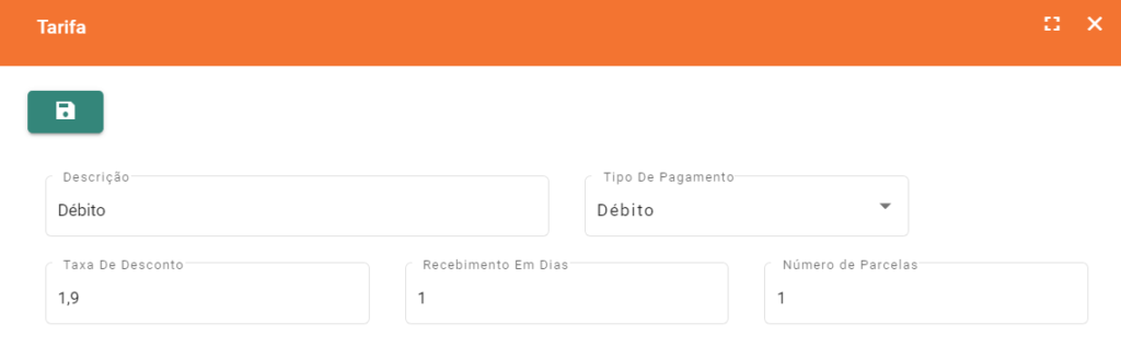 - Número de parcelas: Qual o número de parcelas máximo que essa tarifa é aplicada.