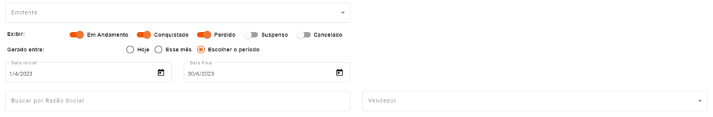 - Emitente: Filtrar pela empresa emitente da Oportunidade;