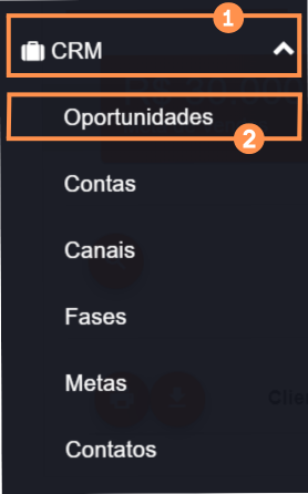 No menu superior a esquerda, acesse CRM > Oportunidades