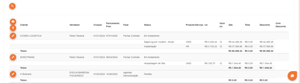- Com Desconto: Apresenta o valor total da Oportunidade, considerando o desconto concedido.