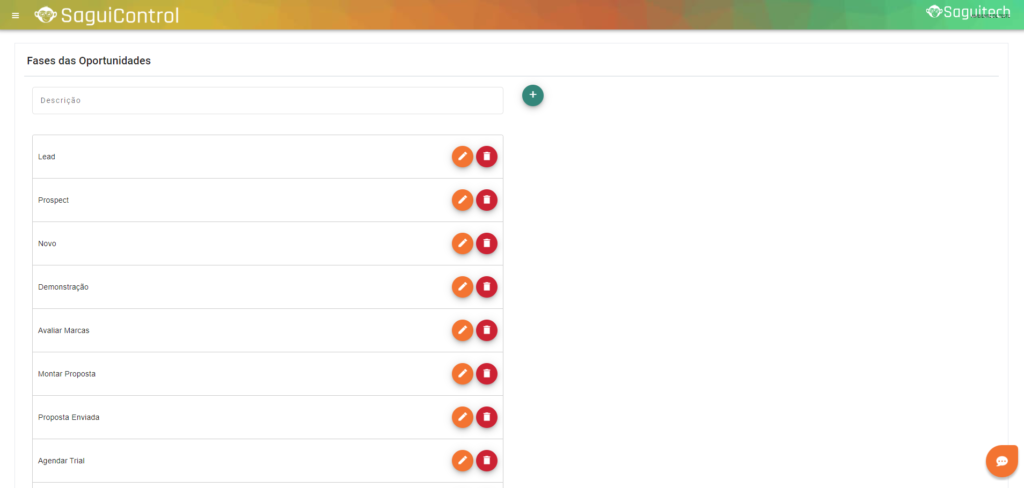 🔎 Para saber mais sobre a tela de Gestão de Fases do Funil, acesse: Entenda a Tela de Gestão de Fases do Funil do CRM no SaguiControl