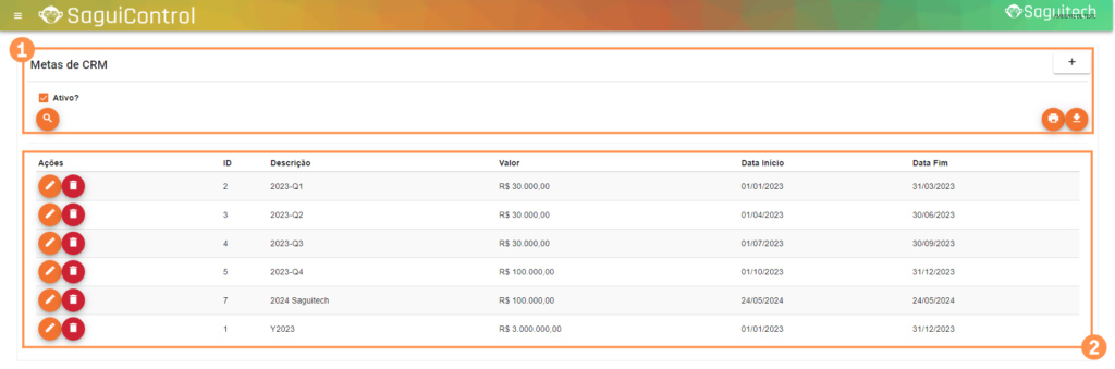 - Ativo?: Seleciona se as Metas apresentados serão os ativos ou os desativados;