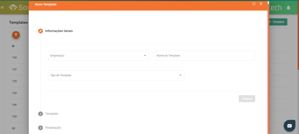 Para realizar o cadastro de um novo template selecione o botão + Template![]()