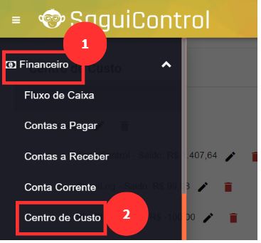 Acesse Menu > Financeiro> Centro de Custo![]()