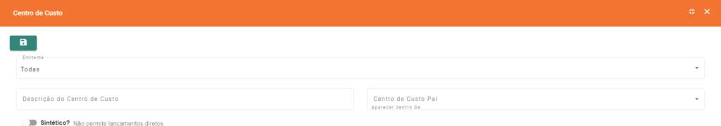 - Emitente: Empresa ou filial para qual o Centro de Custo será usado;