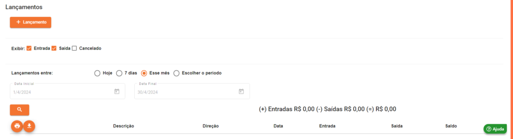 - Entrada, Saída ou Cancelado: Qual o tipo de lançamento que você gostaria de filtrar;