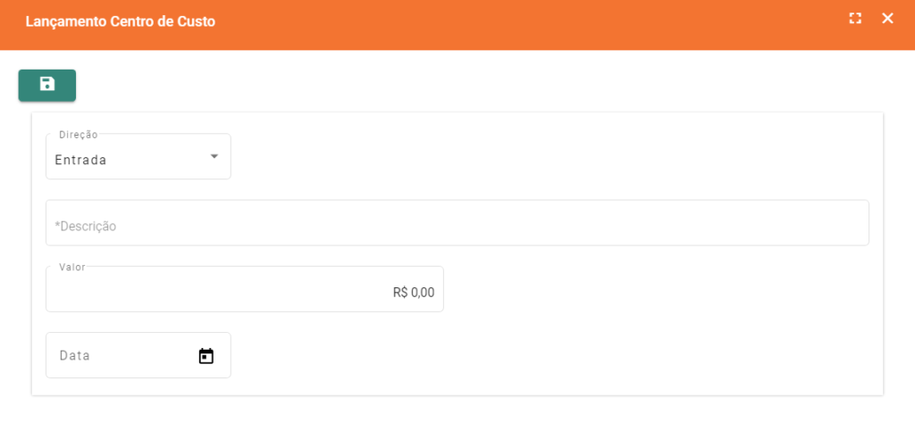 Após Salvo a primeira vez, a janela do Centro de Custo habilitará a tabela de Lançamentos. Nessa tabela é possível visualizar todos os lançamentos realizados dentro desse Centro de Custo além de permitir o lançamento de entradas e saídas.