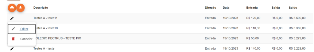 - Editar o Lançamento através do botão com o ícone de lápis