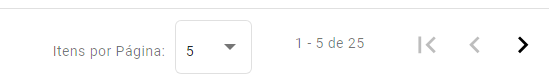 Na parte inferior dessa tabela, é possível configurar a quantidade itens por página e também navegar entre as páginas